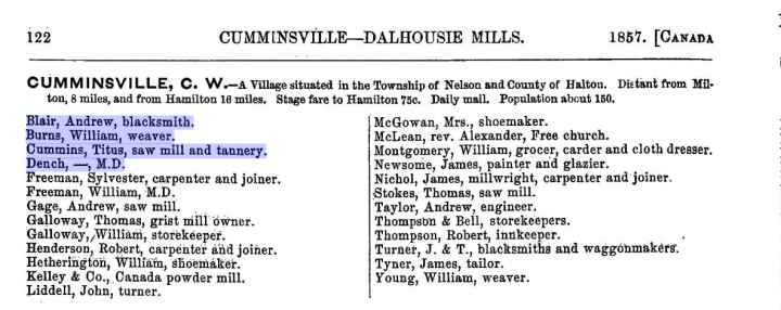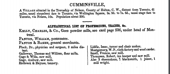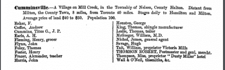 In the 1869 Province of Ontario Gazetteer & Directory shows Cumminsville now being tended to by Dr. William McGregor. Dr. McGregor remained in Cumminsville at least until 1871 when he appears in the Census in Nelson Township. He is married to Sophia and has a son, aged 6.