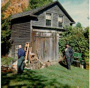 The building was moved from Kilbride in 1972 by two teachers at Pauline Johnson Collegiate Institute in Brantford who spent their summers finding unwanted historical structures and rescuing them for reconstruction in what became Westfield Pioneer Village, near Rockton, Ontario. Goldie MacDonnell, left, and Glen Kilmer, right, are considering the move in this snapshot.