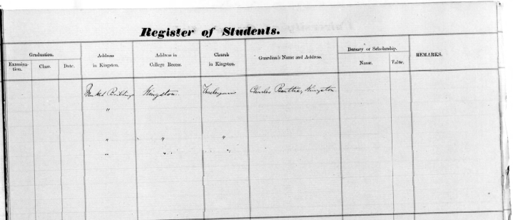 His entrance records further show that his guardian/father was Charles Beattie whose occupation in1862 was bank clerk. Earlier, on the 1861 census, Charles was listed as a bank manager. This dispels earlier accounts that his father was William Sr. and also a physician stationed at the garrison in Kingston. However, on Charles’ death record in 1895 it states that his profession was soldier and that he died at the age of 81 years and 9 months.