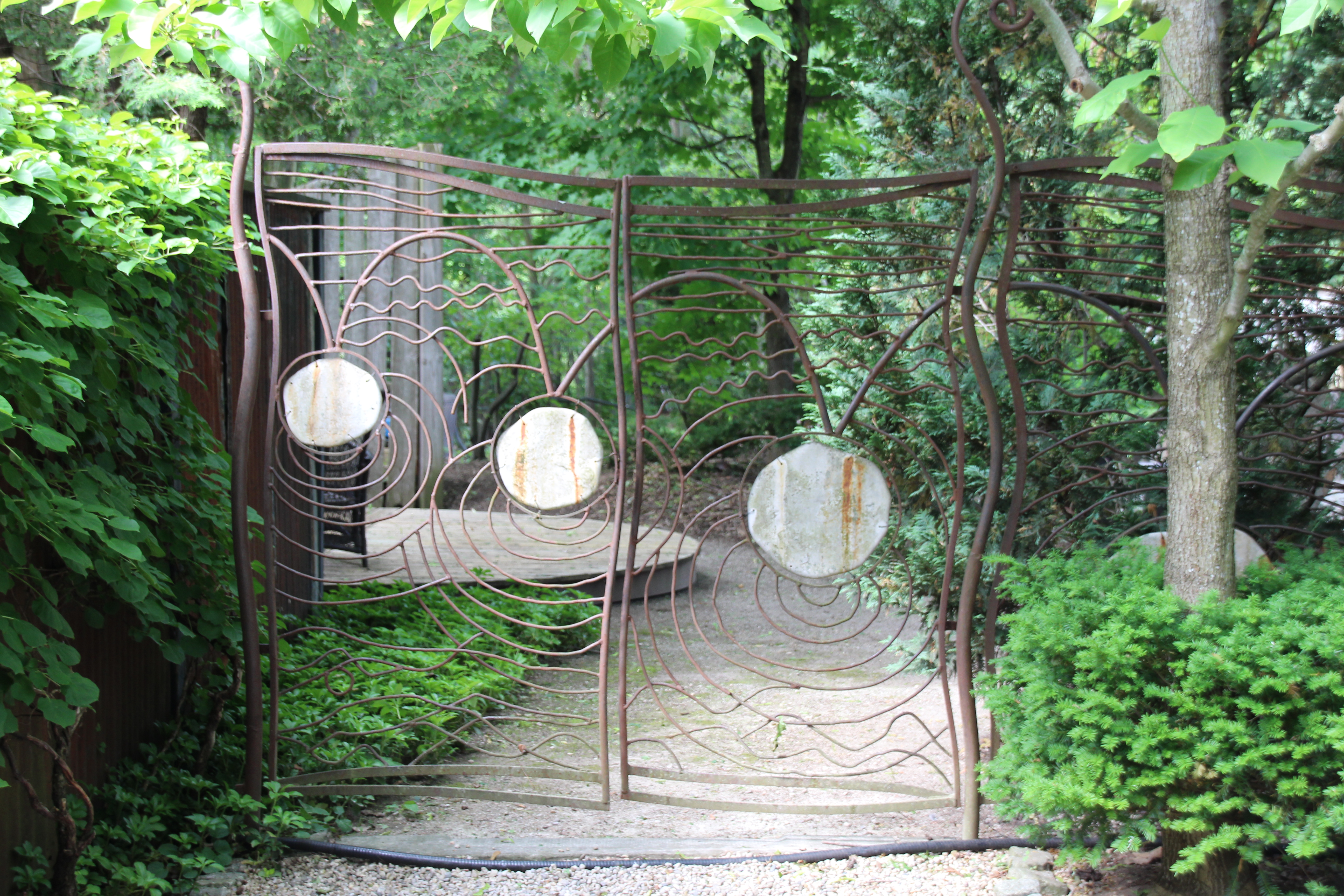 At his home in the heart of the village, Walt created a public sculpture garden that also highlighted his landscape experience. That sculpture garden is visited by hundreds of people each month. Walt feels that this garden is a sacred place that is calm, quiet, and peaceful. It speaks to its visitors in a variety of ways. Some come for the artistic beauty while others find a quiet place to mourn the loss of a loved one. Each has their own reason for coming. They are all invited to leave comments on a blackboard that Walt has left for that purpose. It is not surprising that he refreshes that board every day is it continues to be full of comments.