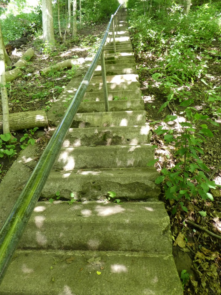What many people do not realize is that at the top of the steep “S” incline continuing north on Guelph Line, you arrive at what was once Highville, an extension of Lowville. The names speak for themselves. One of the concerns for the students of Highville was the trek to the school. To help them get to there, a wooden staircase of 104 steps was built as a short cut.