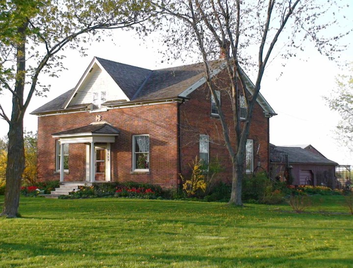 George McCay, son of William McCay, a U.E. L. from Tuscarora, New York, constructed this first brick home north of Dundas Highway in 1847, on 200 acres of land that he had purchased from Duncan McGregor in 1839. The bricks were made at the Campbellville Brick Plant from clay taken from the McCay farm. In 1879 George sold the farm to John Nesbit who then sold it to John. F. Richardson, Deputy Reeve of Nelson Township in 1897. After serving as Reeve, John became Clerk of the Township in 1905, using this house as his office.