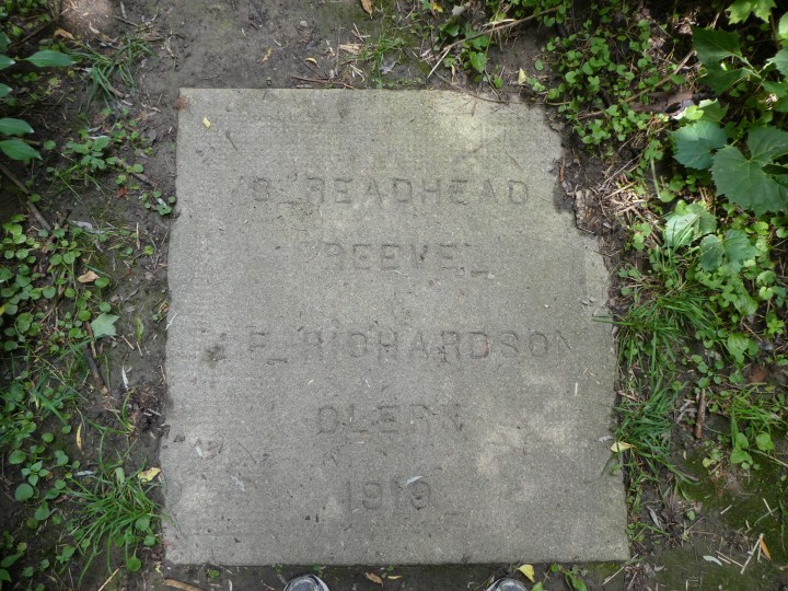 Editor’s Note: At the top of the stairs, there are two inscription stones. The first credits C. Readhead, Reeve and F. Richardson, Clerk. The second credits the building of the steps to J. Auckland and Sons, 1919.