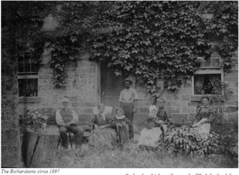 John and Hannah’s family of six had been born in an earlier house on this property, however four following generations grew up in this lovely old stone home. We date the photograph of the family at about 1897 (110 years ago), using the known ages of the children in it. The parents (my grandparents) were Christopher and Annie Richardson. Chris was John and Hannah’s youngest child. Two older boys are not in the picture for some reason and two little girls were yet to be born, my mother Frances, the last in 1903.