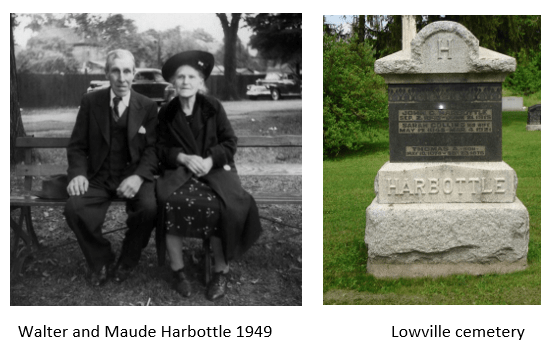 In 1912 Ethel Pickett moved to Edmonton, looking for adventure. There she met Dick Beamish and they were married in 1914. A few months later, Maude Pickett married Walter Harbottle at Abner’s Maple Grove home. They farmed and lived nearby (in the house at 2241 Brittania Road). In 1912 Abner sold his land to Joseph Henry Nicholson for $3500 but continued gardening until shortly before his death. Maude and Walter did not have children but lived in the area until their deaths in 1950. They are buried in the Lowville cemetery.