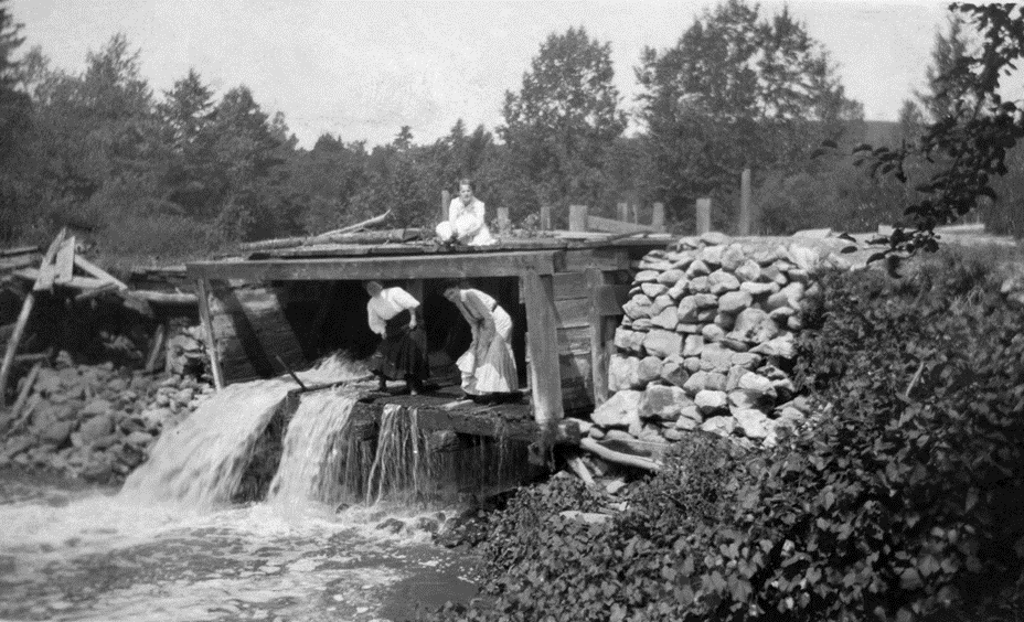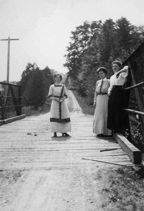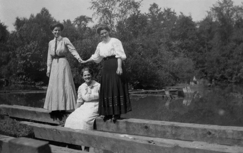 Martha and Edith Frogley with Maude Pickett at the millpond